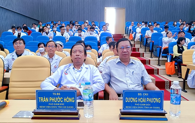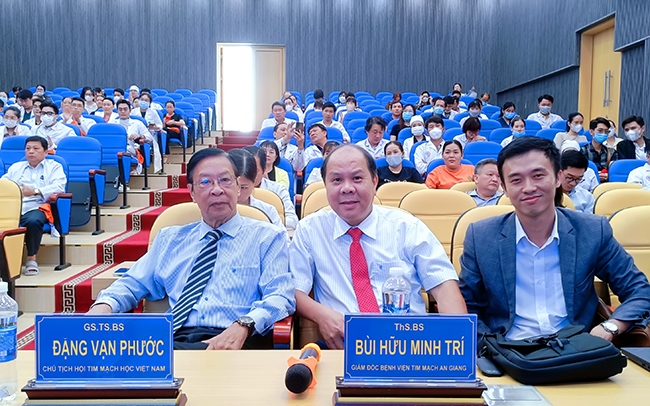 Tham dự Hội thảo có GS.TS.BS Đặng Vạn Phước – Chủ tịch Hội Tim mạch học Việt Nam; ThS.BS Bùi Hữu Minh Trí – Giám đốc Bệnh viện Tim mạch An Giang; TS.BS Trần Phước Hồng – Phó Giám đốc Bệnh viện ĐKKV tỉnh An Giang; BS.CKII Dương Hoài Phương - Phó Giám đốc Bệnh viện ĐKKV tỉnh An Giang; cùng hơn 200 đại biểu là các y bác sĩ, dược sĩ đang công tác tại Bệnh viện và các Trung tâm y tế trên địa bàn.