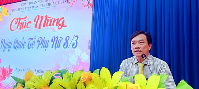 Phát biểu tại buổi lễ BS.CKII Nguyễn Văn Hưng, Giám đốc bệnh viện gửi lời chúc tốt đẹp đến các nữ viên chức của bệnh viện với mong muốn các chị em phụ nữ công đoàn viên của bệnh viện luôn có sức khỏe, công tác tốt, góp phần xây dựng hình ảnh người phụ nữ bệnh viện ĐKKV tỉnh An Giang “tích cực học tập, lao động sáng tạo, xây dựng gia đình no ấm, tiến bộ, hạnh phúc, văn minh” trong thời đại mới.