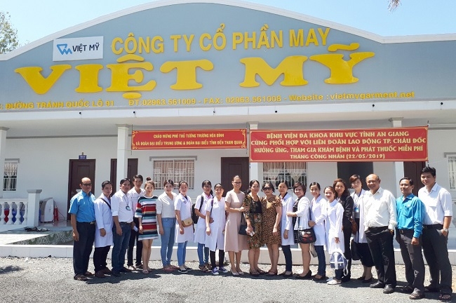 Ngày 22.5, Công đoàn Bệnh viện ĐKKV Tỉnh An Giang phối hợp với LĐLĐ TP. Châu Đốc tổ chức khám, tư vấn sức khỏe và cấp thuốc miễn phí cho công nhân lao động (CNLĐ) tại CTY CỔ PHẦN MAY VIỆT MỸ, Châu Phú B, Thành phố Châu Đốc, An Giang.