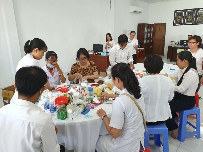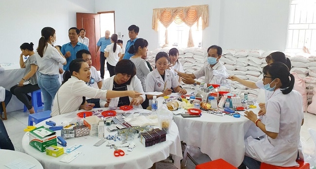 Trưởng đoàn TS.BS Trần Phước Hồng - Phó giám đốc bệnh viện cùng các Y, Bác sĩ tình nguyện của BV ĐKKV tỉnh đã hoàn thành xuất sắc nhiệm vụ khám và phát thuốc miễn phí trong ngày cho 209 CNLĐ đang làm việc tại Công ty may Việt Mỹ.