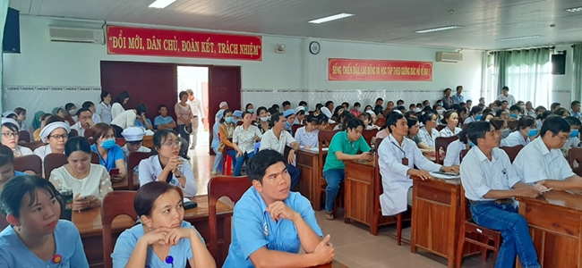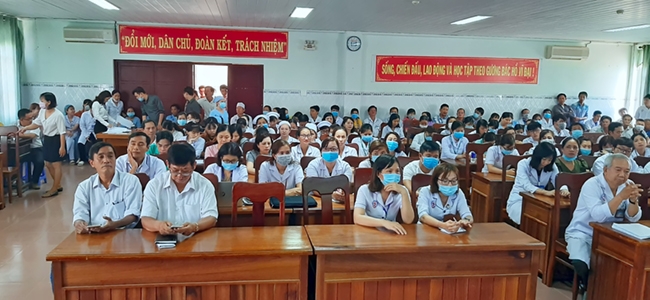 Buổi tập huấn có sự tham dự của BS.CKI Nguyễn Văn Ngọc Răng - Phó Giám đốc Bệnh viện, các Cán Bộ quản lý các khoa phòng, đơn vị và nhân viên tại Bệnh viện.