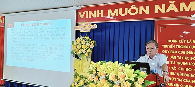 Tại hội nghị, báo cáo viên của thành ủy báo cáo đầy đủ những nội dung quan trọng của04 chuyên đề: “Tiếp tục phát huy truyền thống đại đoàn kết dân tộc, xây dựng đất nước ta ngày càng giàu mạnh, phồn vinh, văn minh, hạnh phúc. Tiếp tục đổi mới, nâng cao chất lượng chính sách xã hội, đáp ứng yêu cầu sự nghiệp xây dựng và bảo vệ Tổ quốc trong giai đoạn mới, về chiến lược bảo vệ Tổ quốc trong tình hình mới. Tiếp tục xây dựng đội ngũ trí thức đáp ứng yêu cầu phát triển đất nước nhanh và bền vững trong giai đoạn mới”.