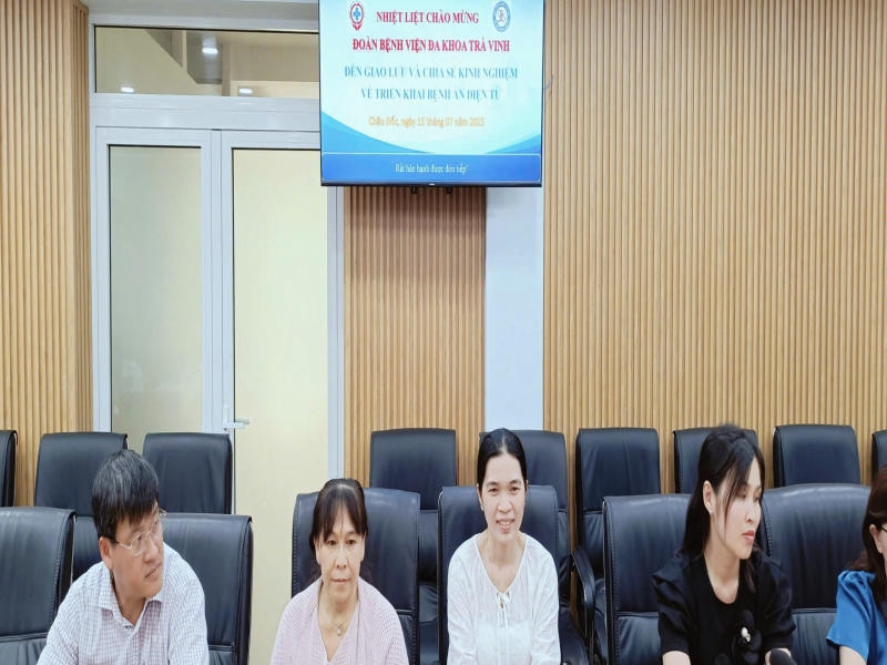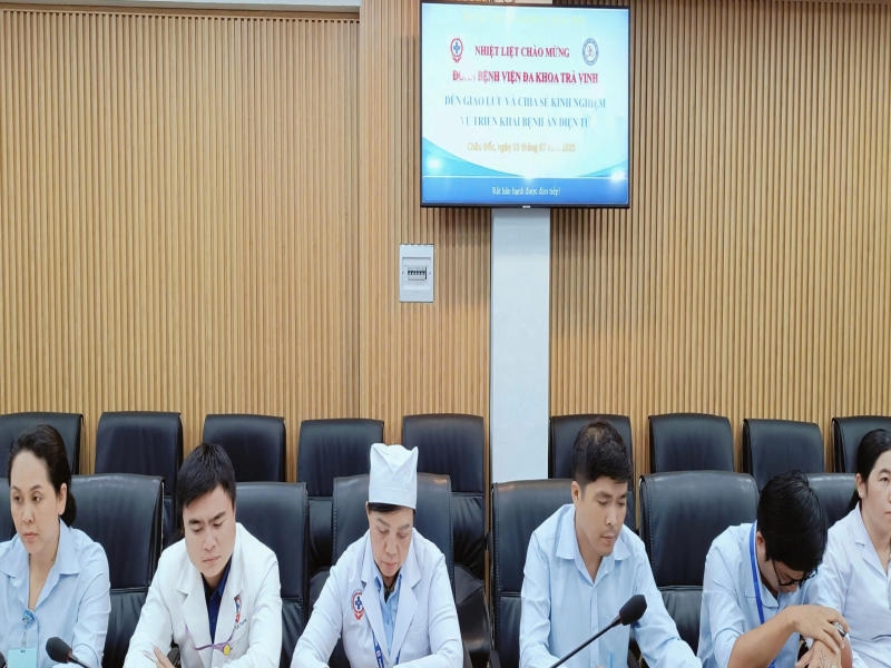 Về phía Bệnh viện Đa khoa Trà Vinh, lãnh đạo và các cán bộ chuyên môn đã giới thiệu tổng quan hệ thống công nghệ thông tin tại bệnh viện, cũng như định hướng triển khai bệnh án điện tử trong thời gian tới. Hai bên đã cùng nhau thảo luận sôi nổi về các nội dung chuyên môn, đặc biệt là việc đồng bộ giữa phần mềm quản lý bệnh viện (HIS), phần mềm lưu trữ và truyền tải hình ảnh y tế (PACS), và bệnh án điện tử nhằm bảo đảm hiệu quả vận hành và chất lượng phục vụ người bệnh.