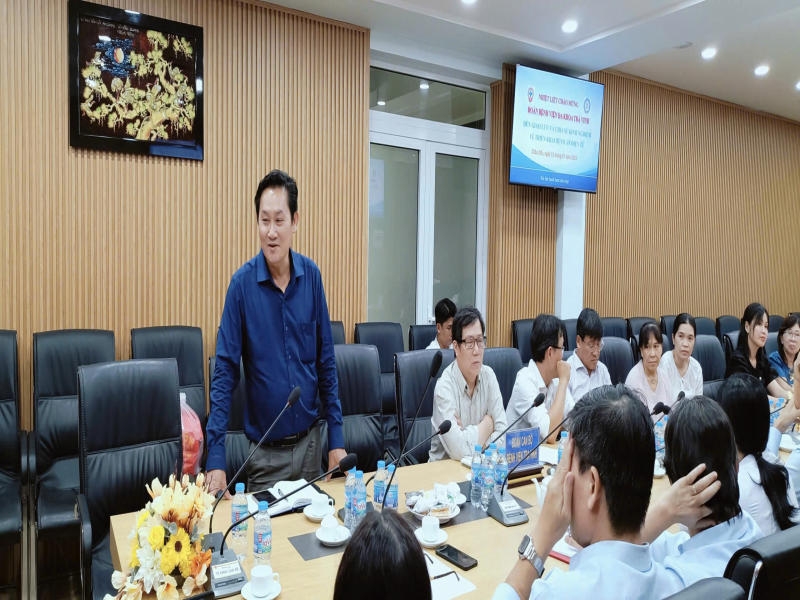Trong buổi làm việc, đại diện Bệnh viện Đa khoa Châu Đốc đã trình bày chi tiết về quá trình chuyển đổi số trong lĩnh vực y tế tại đơn vị mình, đặc biệt là những bước tiến trong việc xây dựng, vận hành và khai thác hiệu quả hệ thống bệnh án điện tử. Bên cạnh đó, bệnh viện cũng chia sẻ những thuận lợi và khó khăn trong quá trình triển khai, từ việc chuẩn hóa dữ liệu, đào tạo nhân lực y tế, đến các biện pháp khắc phục khi gặp vướng mắc về kỹ thuật hoặc quy trình vận hành.