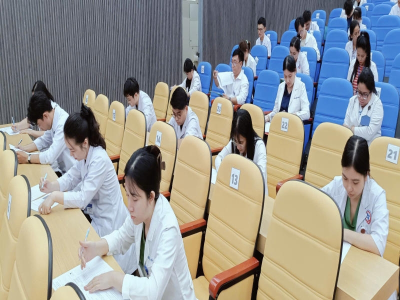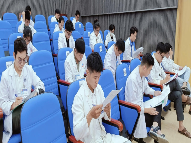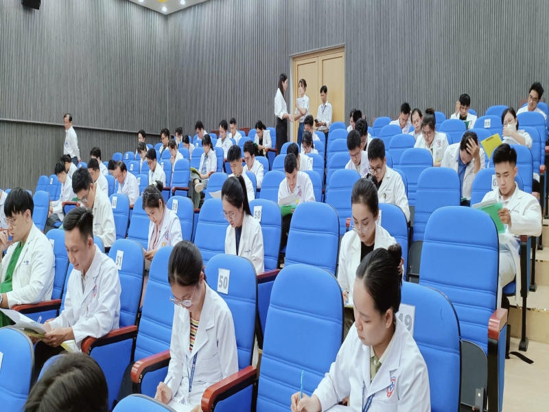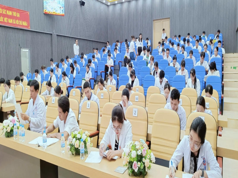 Hội thi được thiết kế với hai phần thi chính: Kiến thức pháp luật ngành y và kiến thức chuyên môn. Ở phần chuyên môn, các câu hỏi tập trung vào nhiều lĩnh vực cốt lõi như hồi sức – cấp cứu, nội khoa, ngoại khoa, sản, nhi và truyền nhiễm. Đây là những mảng kiến thức mà bất kỳ bác sĩ nào cũng cần nắm vững để đảm bảo an toàn cho người bệnh. Cách thức thi trắc nghiệm với 50 câu hỏi trong 60 phút không chỉ kiểm tra kiến thức, mà còn rèn luyện khả năng tư duy nhanh và quyết đoán – phẩm chất không thể thiếu của người thầy thuốc.