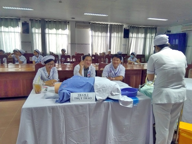 + Vòng 2: Thi thực hành từ ngày 06/11/2019 đến ngày 08/11/2019; Thi thực hành bằng hình thức chạy trạm, gồm 05 trạm với các kỹ thuật chăm sóc và xử lý tình huống, thời gian qua mỗi trạm là 5 phút.
