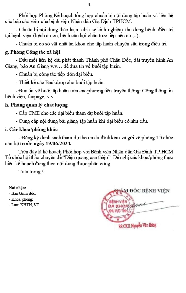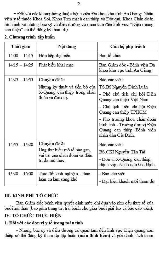 Kế Hoạch Về Việc Phối Hợp Với Bệnh Viện Nhân Dân Gia Định Tp.Hcm Tổ Chức Hội Thảo Chuyên Đề “Điện Quang Can Thiệp