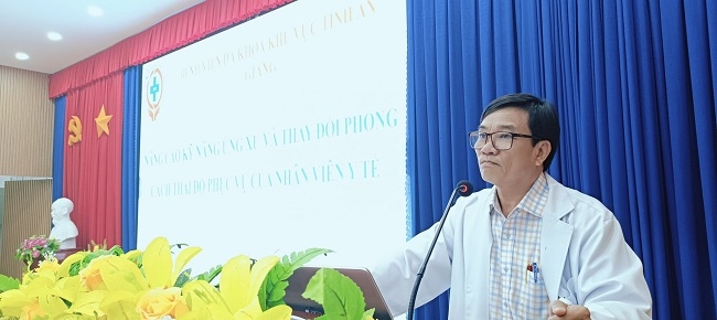 Tham dự buổi tập huấn có BS.CKII Nguyễn Văn Hưng - Giám Đốc Bệnh viện Đa Khoa khu vực tỉnh An Giang; BS.CKII Dương Hoài Phương - Phó Giám đốc Bệnh viện; BS.CKII Võ Minh Hiền - Phó Giám đốc Bệnh viện; cùng các Trưởng Phó Khoa/Phòng tại bệnh viện.