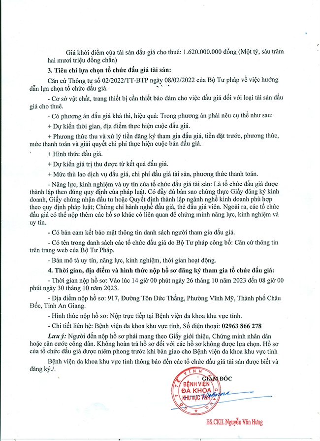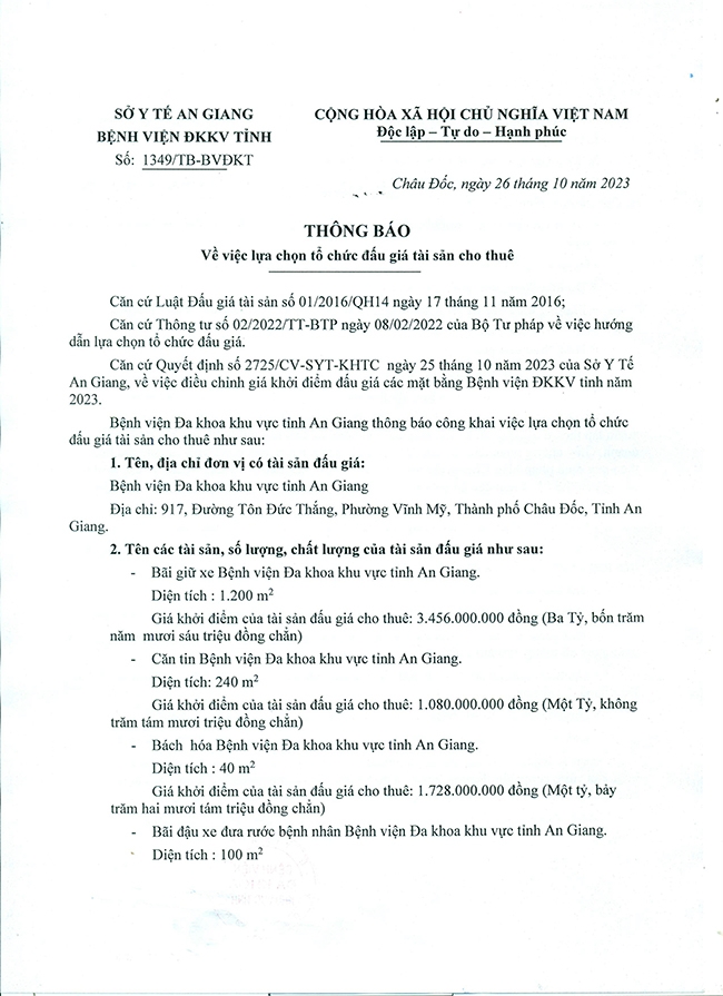 Thông Báo Về Việc Lựa Chọn Tổ Chức Đấu Giá Tài Sản Cho Thuê