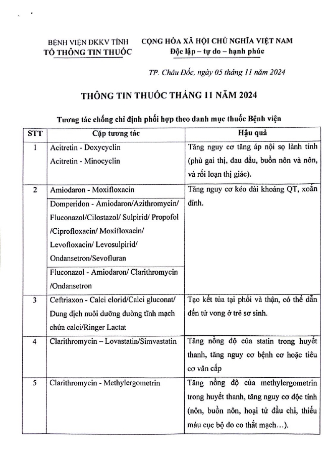 THÔNG TIN THUỐC THÁNG 11 NĂM 2024