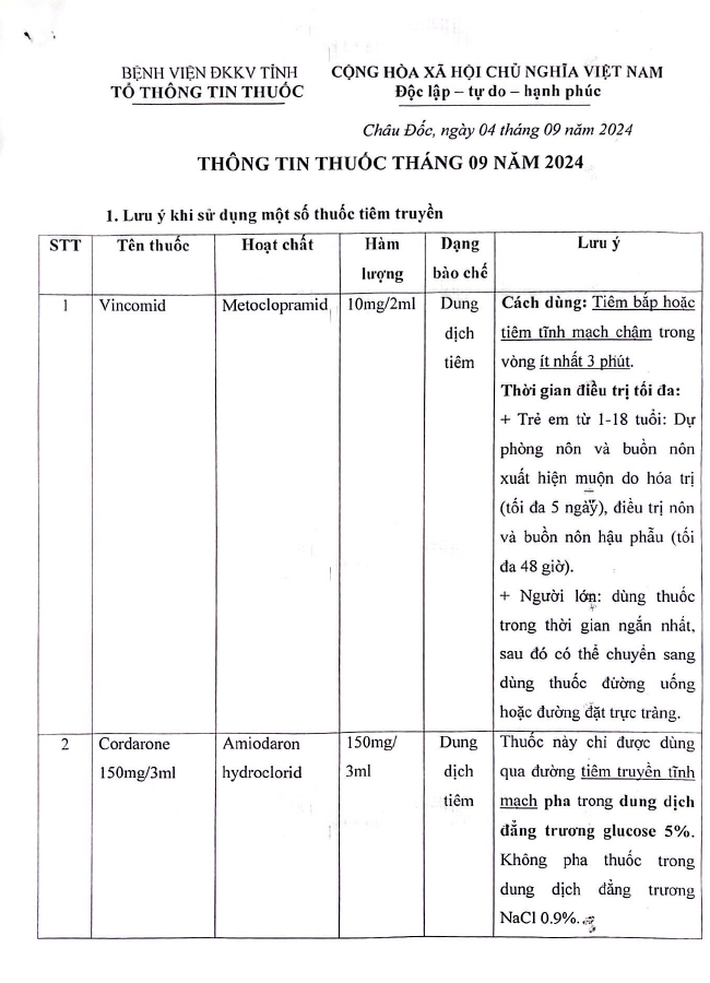 THÔNG TIN THUỐC THÁNG 9 NĂM 2024