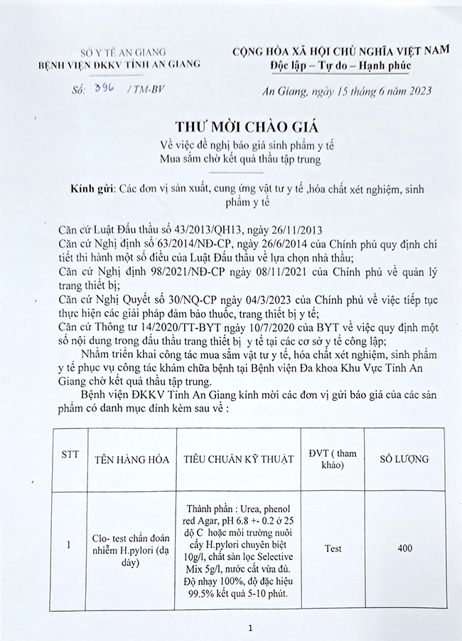 THƯ MỜI CHÀO GIÁ THÁNG 6.2023 15/06/2023 20 Thông Tin Mời Thầu & Danh Mục VTYT Share THƯ MỜI CHÀO GIÁ THÁNG 6 TAGS: trung tâm xét nghiệm trung tam xet nghiem THƯ MỜI CHÀO GIÁ THÁNG 6 2023 thu moi chao gia thang 6 2023