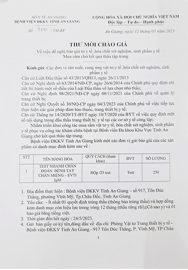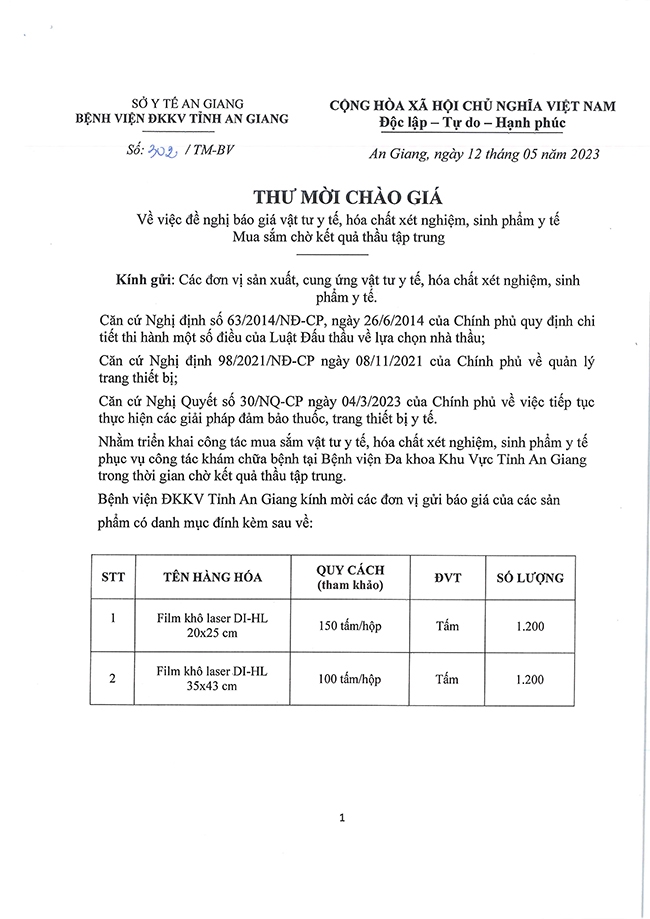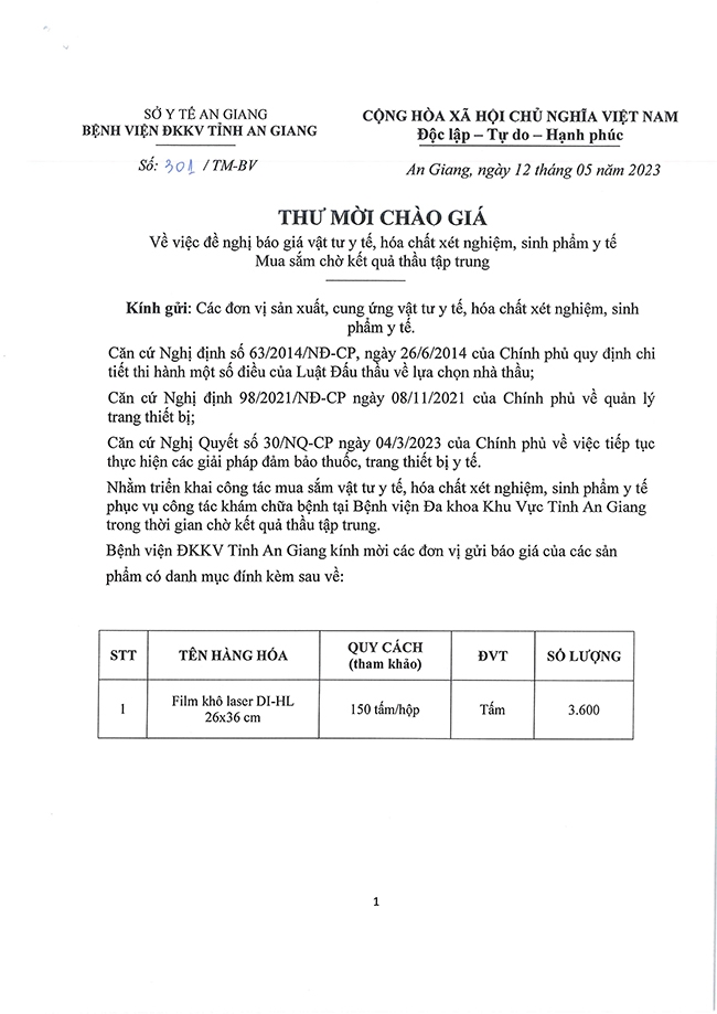THƯ MỜI CHÀO GIÁ VẬT TƯ TRANG THIẾT BỊ Y TẾ THÁNG 05 12/05/2023 38 Thông Tin Mời Thầu & Danh Mục VTYT Share THƯ MỜI CHÀO GIÁ VẬT TƯ TRANG THIẾT BỊ Y TẾ THÁNG 05 TAGS: trung tâm xét nghiệm trung tam xet nghiem THƯ MỜI CHÀO GIÁ VẬT TƯ TRANG THIẾT BỊ Y TẾ THÁNG 05 thu moi chao gia vat tu trang thiet bi y te thang 05