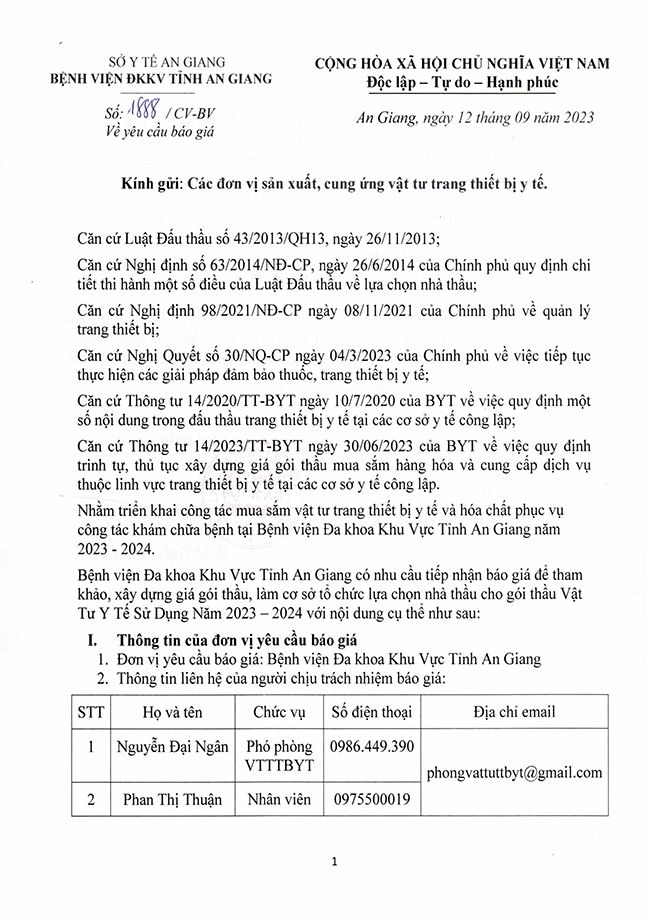 THƯ MỜI CHÀO GIÁ VẬT TƯ Y TẾ T09.2023 12/09/2023 42 Thông Tin Mời Thầu & Danh Mục VTYT Share THƯ MỜI CHÀO GIÁ VẬT TƯ Y TẾ T09.2023 TAGS: trung tâm xét nghiệm trung tam xet nghiem THƯ MỜI CHÀO GIÁ VẬT TƯ Y TẾ T09 2023 thu moi chao gia vat tu y te t09 2023