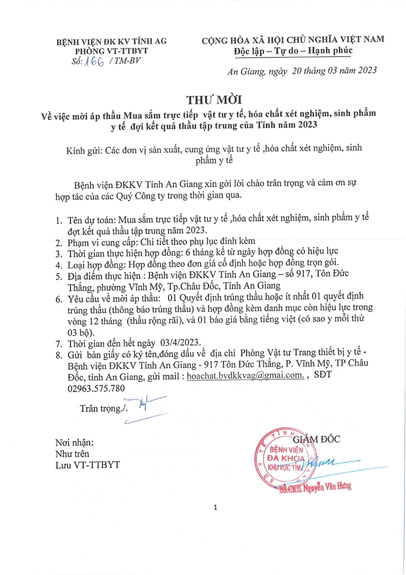 Thư mời về việc áp thầu mua sắm 20/03/2023 29 Thông Tin Mời Thầu & Danh Mục VTYT Share THƯ MỜI VỀ VIỆC ÁP THẦU MUA SẮM Chi tiết tại đây. Danh mục đính kèm. TAGS: trung tâm xét nghiệm trung tam xet nghiem Thư mời về việc áp thầu mua sắm thu moi ve viec ap thau mua sam