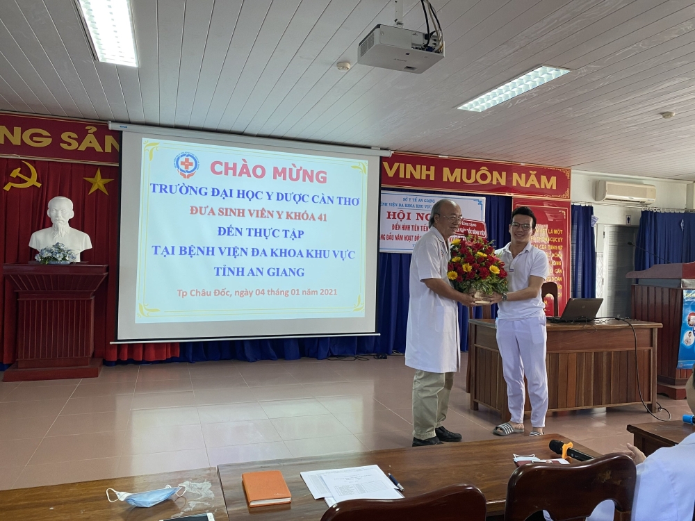 Ngày 04/01/2021, Ban Giám đốc bệnh viện Đa khoa khu vực tỉnh An Giang tiếp Đoàn cán bộ Trường Đại học Y dược Cần Thơ cùng toàn thể sinh viên Y khoa Khóa 41 đến thực tập tại Bệnh viện Đa khoa khu vực tỉnh An Giang.